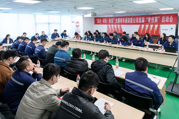 與會人員觀看了《同心筑夢 強(qiáng)企有我》微視頻,回顧了團(tuán)委成立以來的工作開展情況和青年員工的成長進(jìn)步。團(tuán)委書記曹林宣讀了《關(guān)于開展公司首屆“青創(chuàng)賽”的通知》,對大賽機(jī)制和激勵(lì)獎(jiǎng)勵(lì)作了重點(diǎn)講解。人力資源部主任魏鐸對公司青年人才培養(yǎng)政策進(jìn)行宣講,幫助青年厘清職業(yè)規(guī)劃。